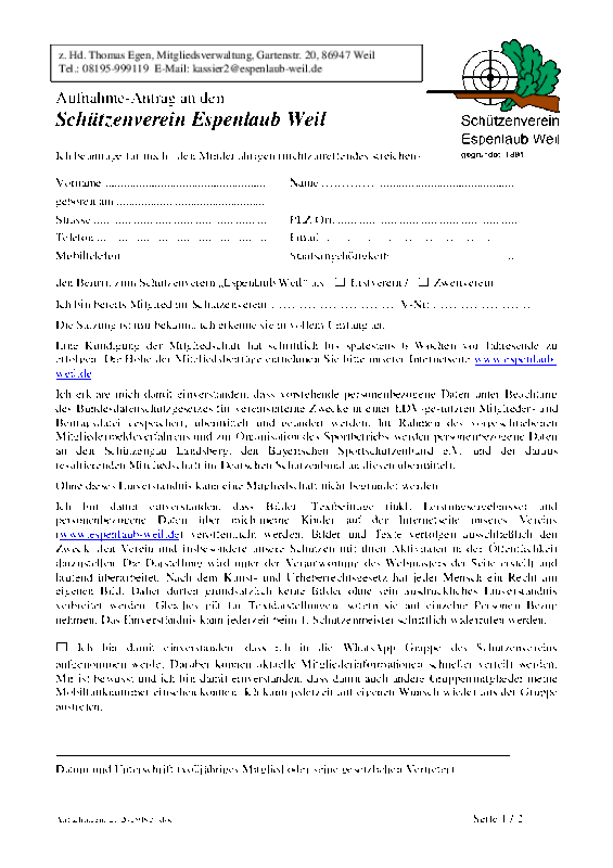 | Vereinsname: | Schützenverein Espenlaub Weil e.V. |
